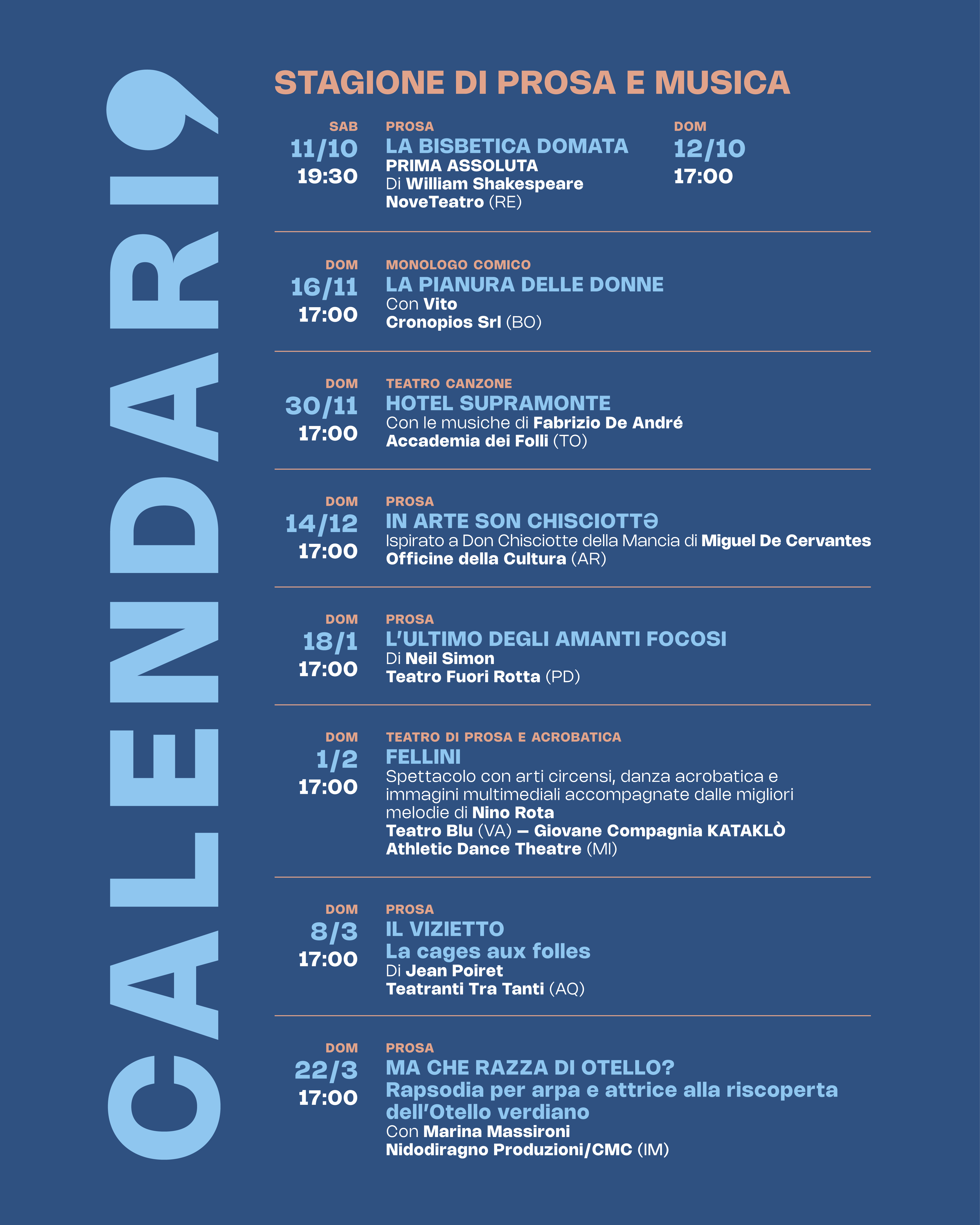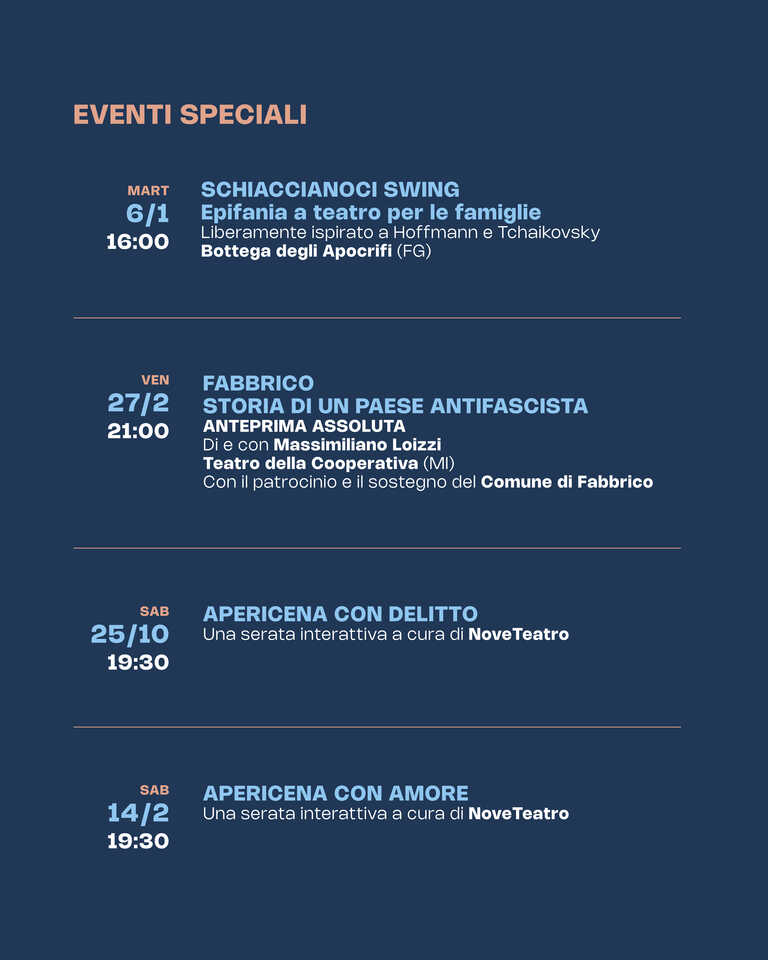 Da ottobre a marzo il ๐๐๐ซ๐ญ๐๐ฅ๐ฅ๐จ๐ง๐ propone 8 spettacoli in 9 repliche e 4 eventi speciali e, per estendere l'esperienza artistica oltre il palco, tre mostre d'arte, curate dall'Assessora alla Cultura e art curator ๐ธ๐๐๐ ๐๐๐๐ก๐ก๐ ๐๐๐ง๐ง๐๐ก๐ก๐, accompagneranno la Stagione per tutta la sua durata.