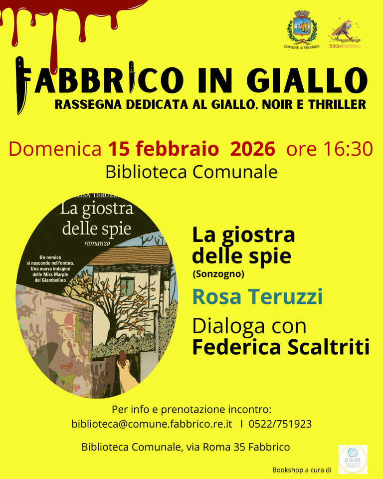 Siete pronti a immergervi nel mistero? Il prossimo incontro della nostra rassegna "Fabbrico in giallo" ospita Rosa Teruzzi, che, domenica 15 febbraio alle ore 16.30 presso la Biblioteca comunale, ci presenterà il suo ultimo libro "La giostra delle spie".
