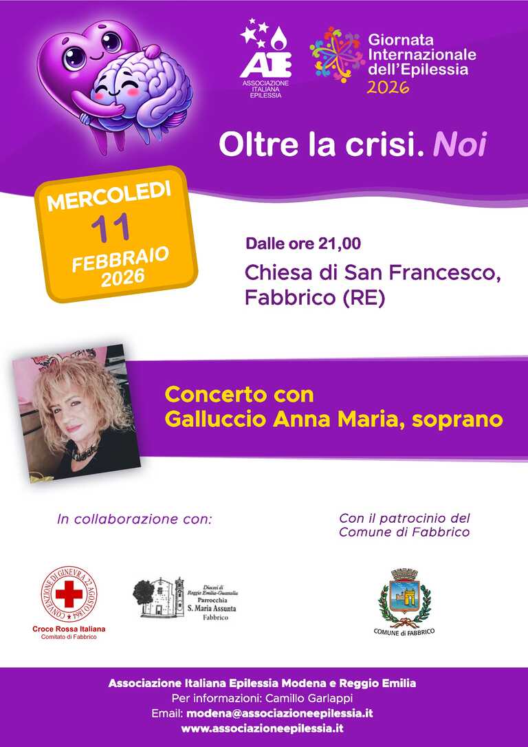 In occasione della Giornata Internazionale dell'Epilessia 2026, l’Associazione Italiana Epilessia Modena e Reggio Emilia, con il patrocinio del Comune di Fabbrico, organizza un momento di musica e sensibilizzazione.