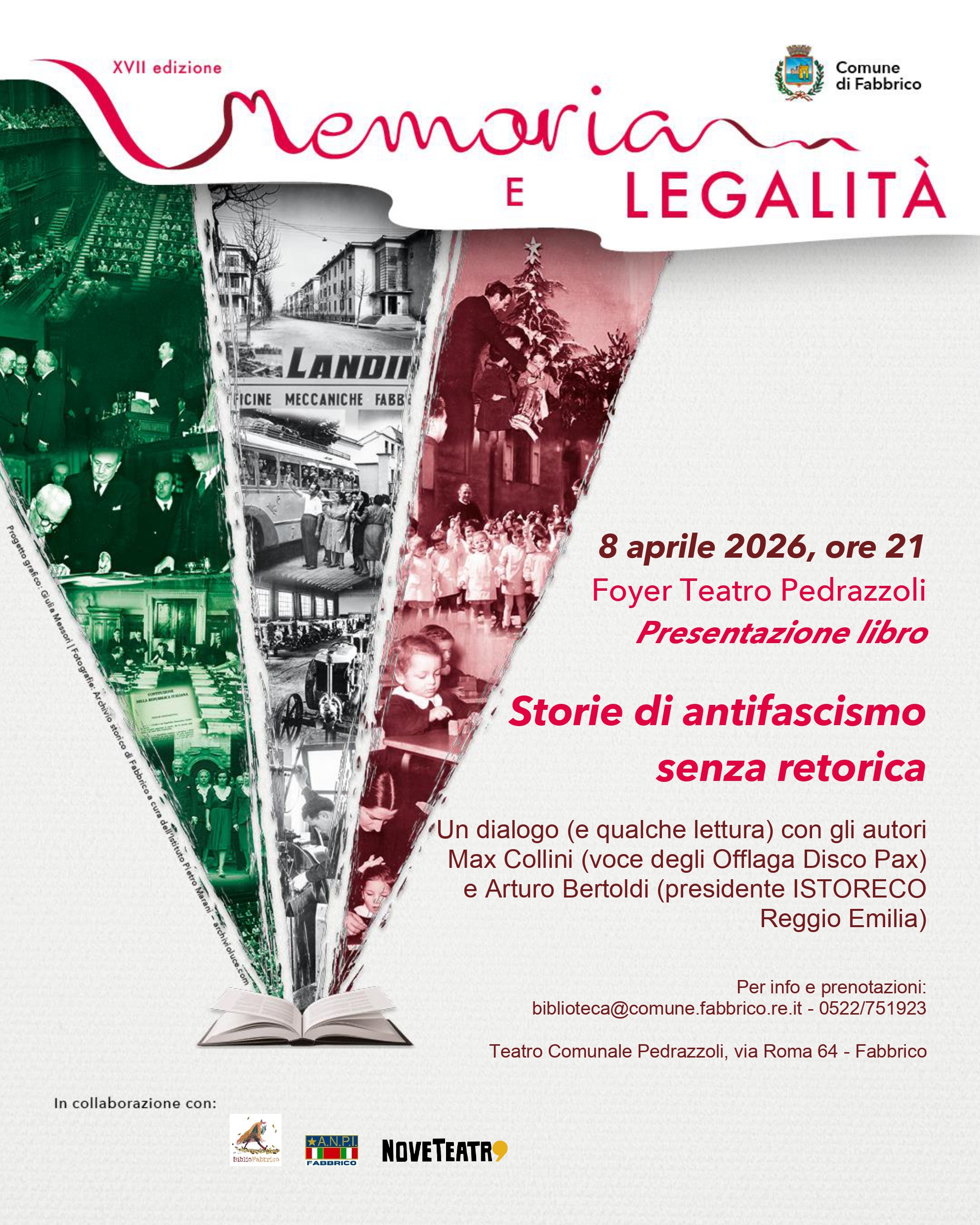 Mercoledì 8 aprile alle 21, nell'ambito di Memoria & Legalità, nel foyer del Teatro comunale Pedrazzoli, incontreremo gli autori Max Collini (voce degli Offlaga Disco Pax) e Arturo Bertoldi (presidente ISTORECO Reggio Emilia) per un dialogo (e qualche lettura).